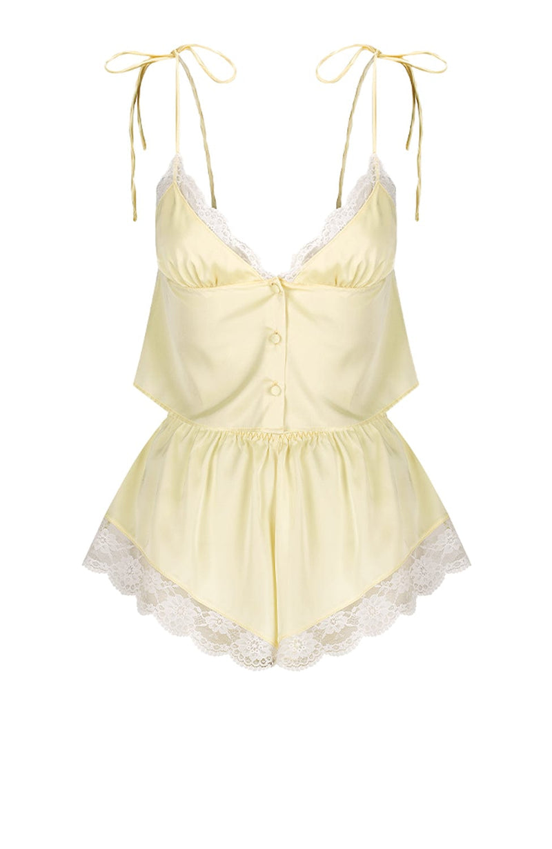 Indulge in luxury with our Arabella Camisole and Short Set, part of our Decade Drop collection. This exquisite set in Limoncello combines elegant vintage lace, scalloped edge trims, and our signature satin for a timeless and nostalgic feel. Elevate your sleepwear with the perfect blend of charm and sophistication.