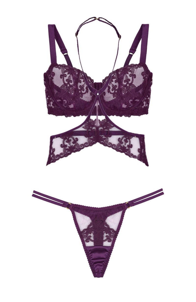 Cecilia Balcony Bra, Harness and Strap Thong Set