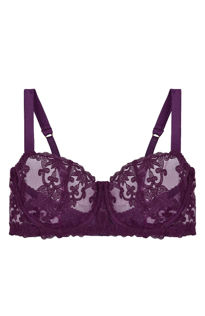 The Cecilia Balcony Bra melds exquisite craftsmanship with everyday elegance. Featuring bespoke embroidery personally designed by our founder Fleur, this underwired bra in a rich deep purple offers exceptional support, shape, and uplift across a wide range of sizes. It’s a timeless piece that elevates your lingerie wardrobe with both beauty and function.