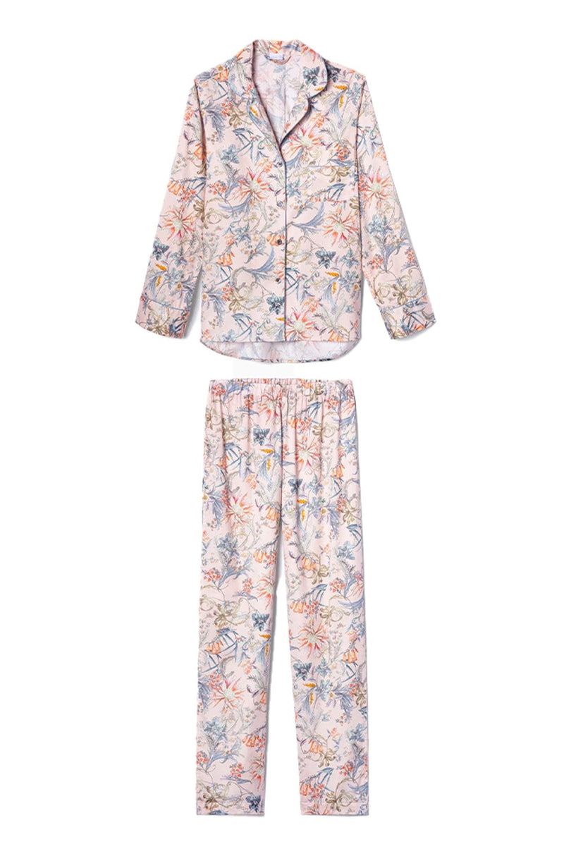 Experience the refined comfort of the Cotton Print Long Pyjama Set, crafted from luxuriously smooth cotton sateen. Featuring elegant Swiss-designed seasonal prints, this set offers silky softness for restful nights. Thoughtful details include mother-of-pearl buttons, delicate piping, a front button closure, and an elasticated waistband for a perfect fit. Ideal for those who appreciate understated elegance and supreme comfort in their loungewear.