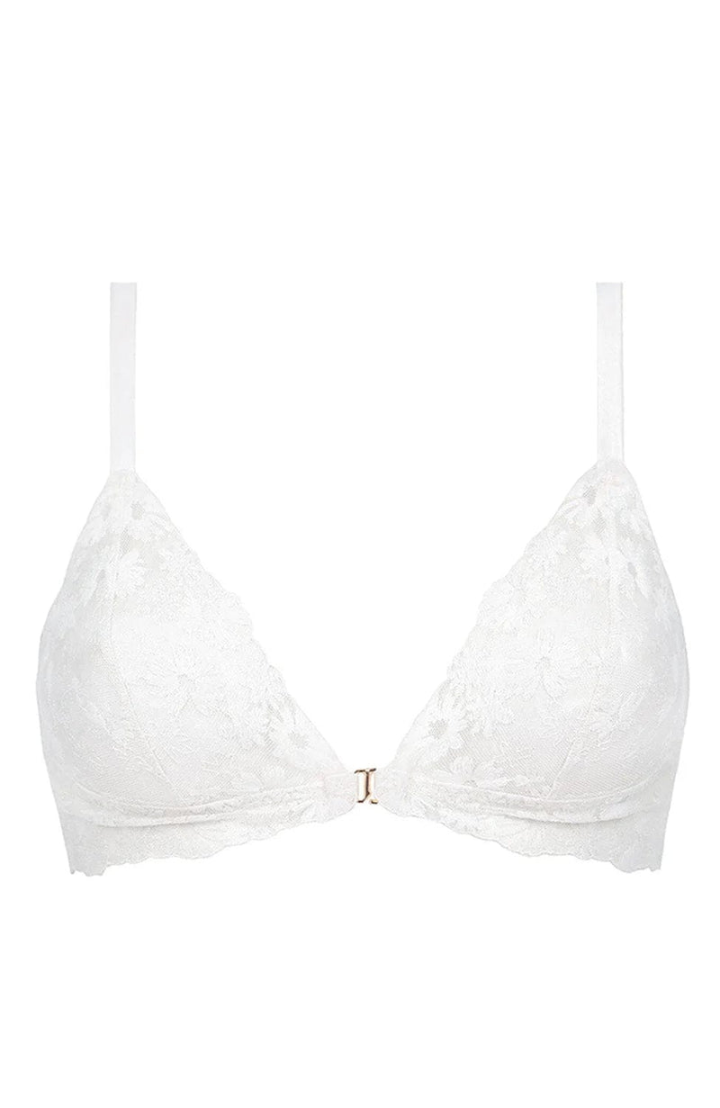 Upgrade your lingerie collection with the Daisy Boudoir Bra. Featuring a luxurious front-fastening 24-carat gold plated swan hook and recycled yarn tulle base, this bra also boasts silk straps with 24-carat gold plated rings and sliders for a touch of glamour. The soft under band frill provides a flattering silhouette.