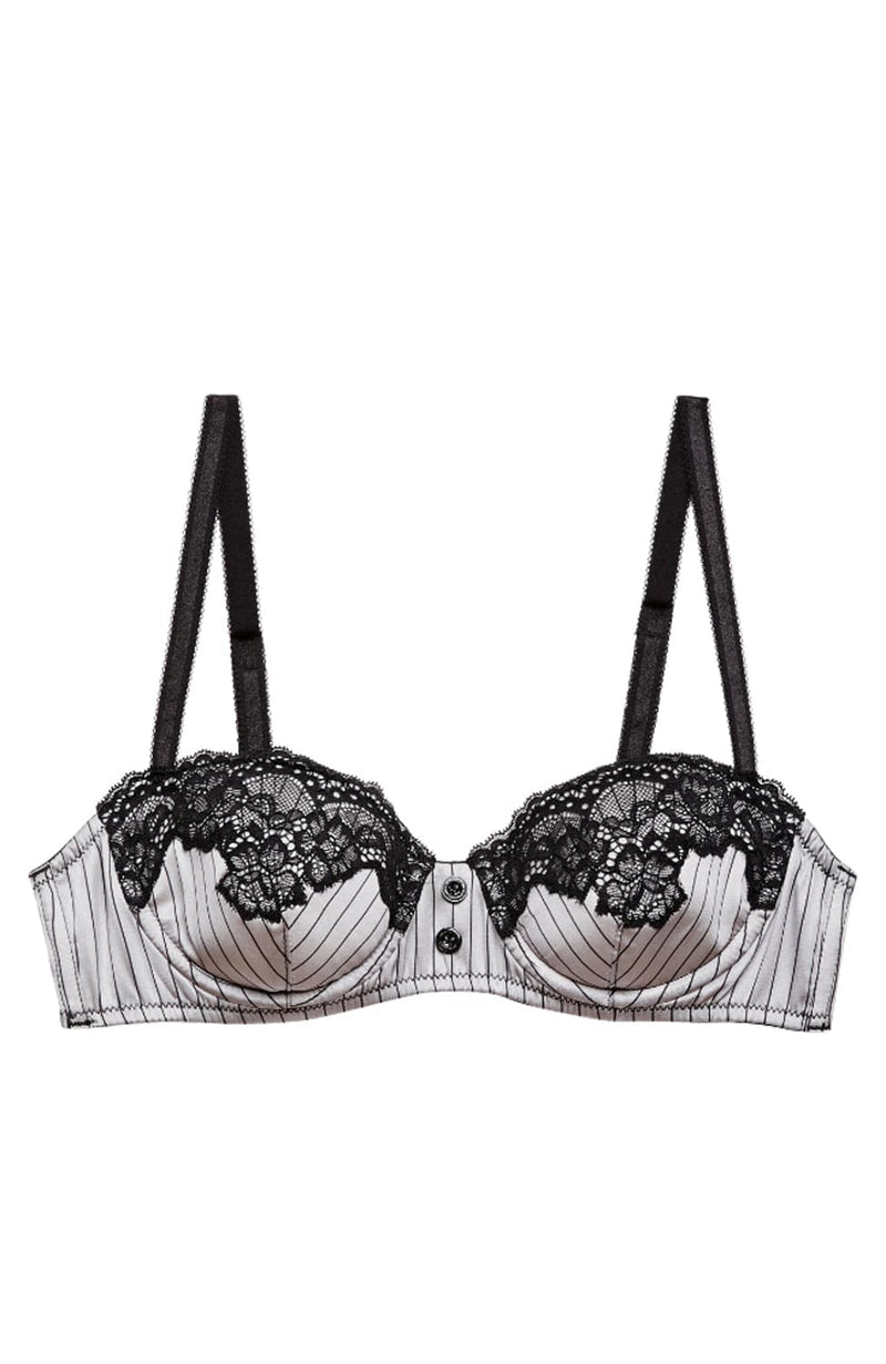 Elevate your lingerie collection with the Executive Balconette Padded Bra. Crafted for a refined silhouette, it offers gentle support and a flattering lift, perfectly complementing the Executive Garter Belt's luxe pinstripe silk and scalloped lace details. Designed to enhance confidence and sophistication, this bra completes a polished, alluring ensemble when paired with matching pieces.
