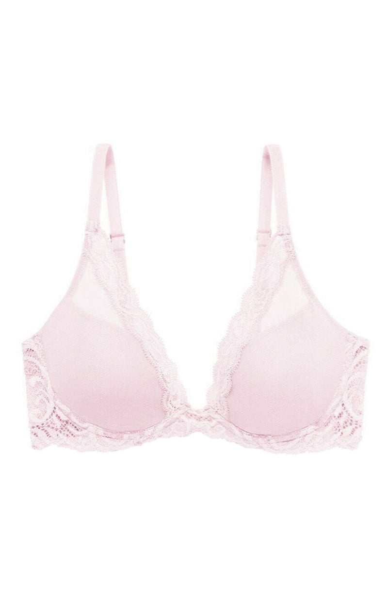 One of our best-sellers! The famous Feathers Bra by Natori feels like second skin on the body, delivery ultimate comfort for everyday wear. Featuring a signature Italian lace trim and mesh overlays for sexy coverage, this deep plunging neckline is versatile for any outfit.
