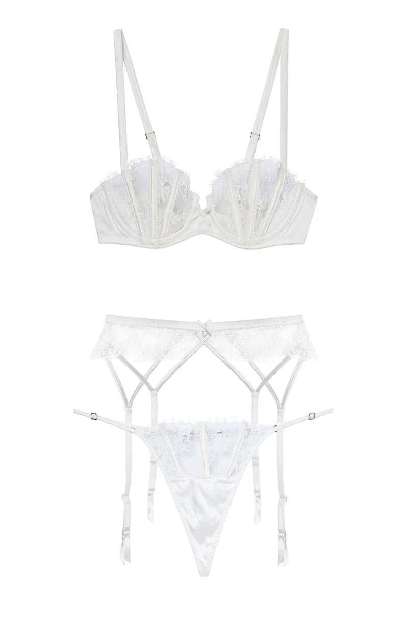 Frankie Lace Boned Balconette Bra, Garter Belt and G-string Set