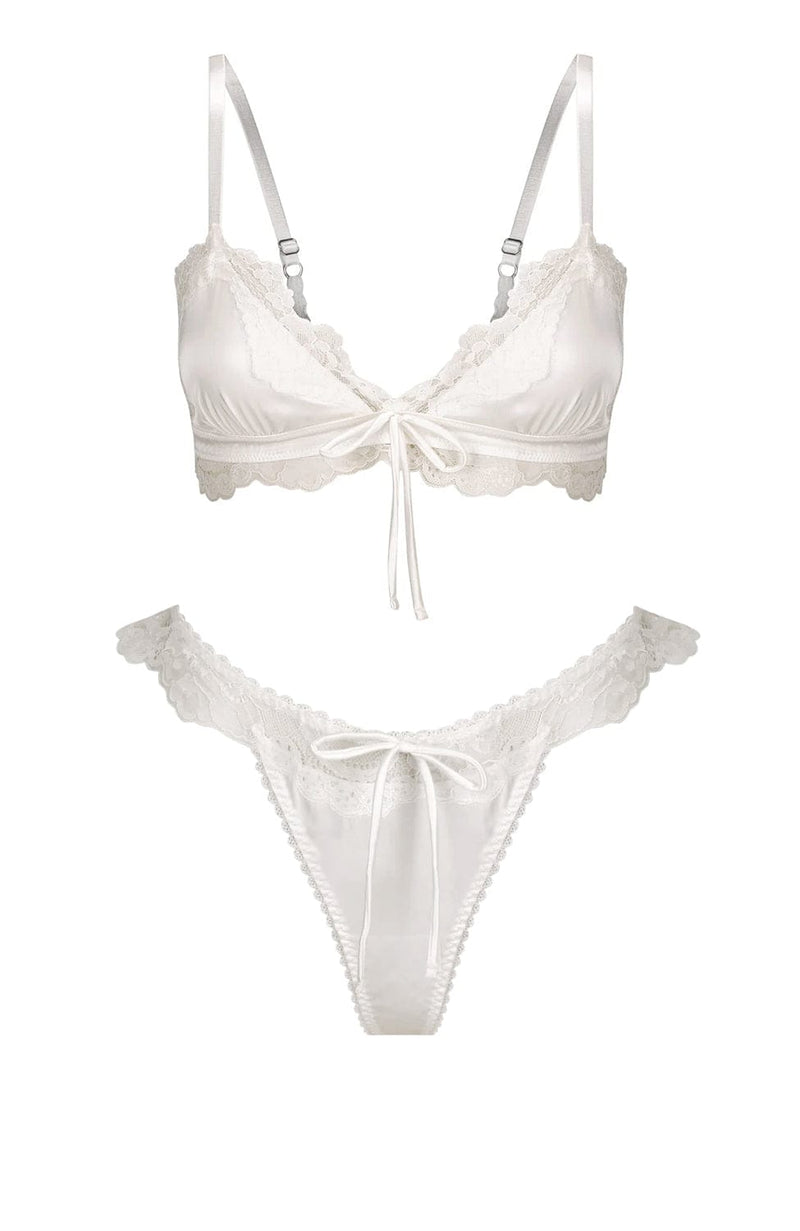 Introducing the Madeline Bralette in Ivory—a sophisticated essential that seamlessly blends luxury and wearability. Constructed from sumptuous soft satin and finished with intricate lace detailing, this piece exudes understated elegance. The scallop lace trim and graceful front tie create a refined silhouette that transcends occasion, whether layered beneath your wardrobe or showcased on its own.