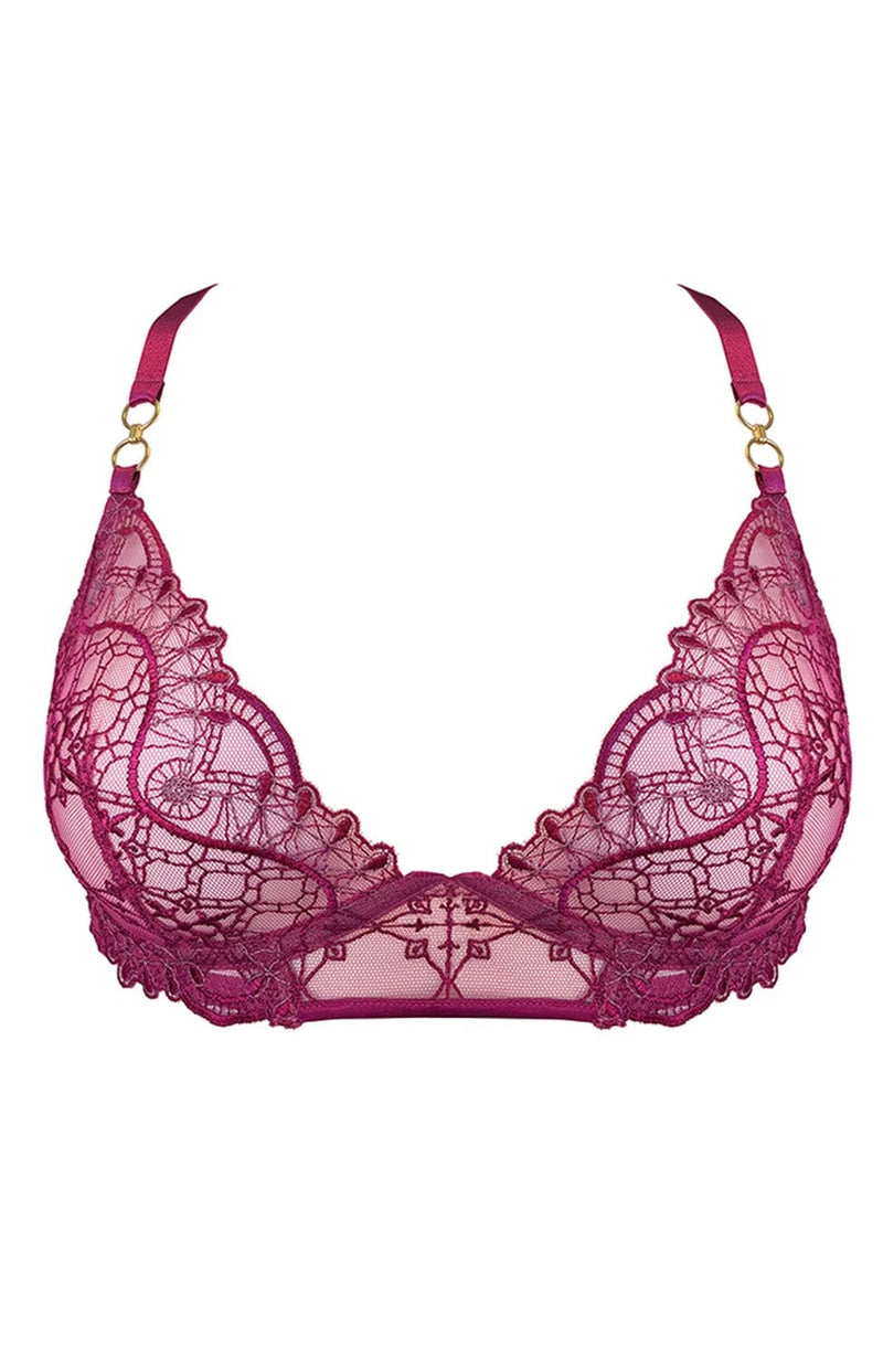 - Embroidered soft tulle, inspired by gothic architecture, in vibrant Magenta