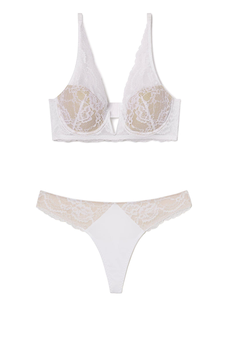 Make a statement with our newest Minx V-Wire Plunge Lace Bra. Our delicate Minx lace adds a touch of femininity to this daring style, perfect for low-cut tops and dresses. Let a hint of lace peek through for added drama. A must-have for any fashion-forward wardrobe.