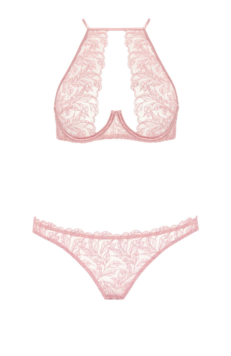 Rose High Neck Plunge Bra and Brazilian Knicker Set