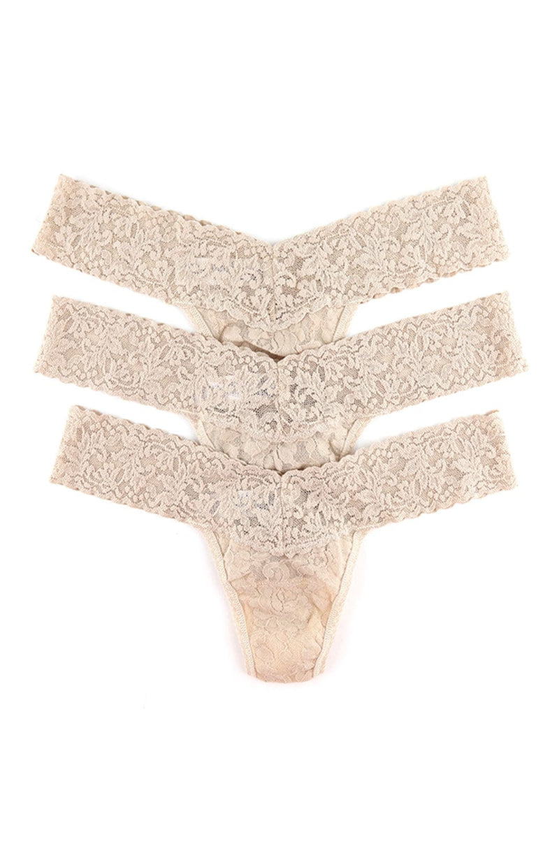 Signature Lace Low Rise Thong 3 Pack are crafted in the Hanky Panky's signature, super comfy stretch lace. Adorned with sheer cheek detailing, these thongs offer a delicate and comfortable option for all-day wear.