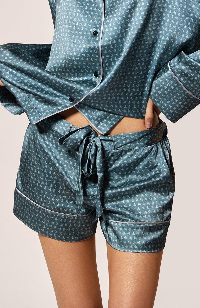 Indulge in intimate luxury with our Moi et Toi Tie Up Short, crafted from sumptuous silk charmeuse. This sophisticated piece features an exclusive, provocative all-over print celebrating closeness and connection. Pair with the matching Moi et Toi PJ Top for a complete, coordinated ensemble that whispers refined sensuality.