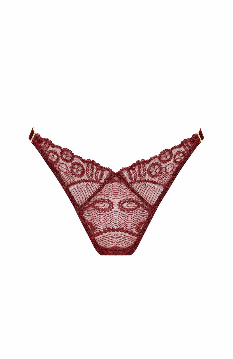 Indulge in the luxurious Tierra Thong. The delicate Bespoke embroidered tulle front and comfortable mesh back provide a flattering high leg fit. Personalize your comfort with 24k gold plated adjustments over the hip. Feel exclusive and elegant with every wear.