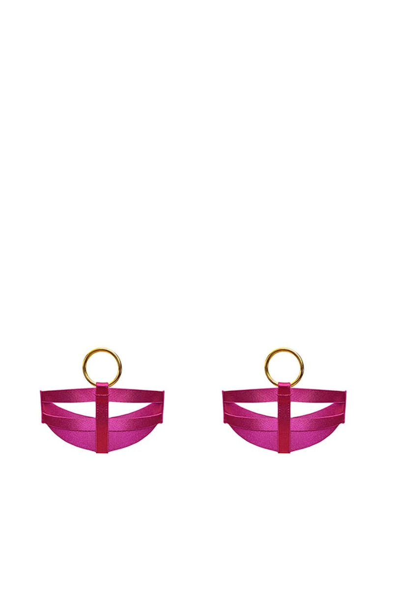 Elevate your lingerie game with the Vero Garters. Crafted from soft satin elastic and featuring 24k gold plated components, these garters are fully adjustable for the perfect fit. Use the oversized 'O' ring to secure to suspender clips or attach directly to elastic straps. Make a statement with Bordelle.